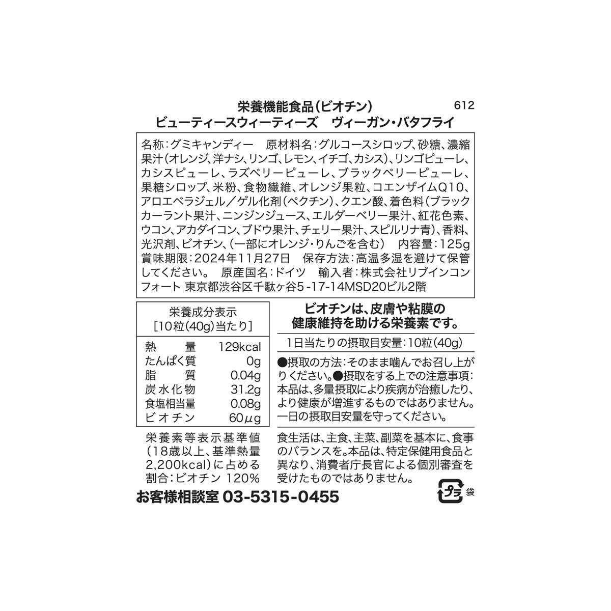 商品名:ビューティースウィーティーズ ヴィーガン・バタフライ 125g【栄養機能食品】